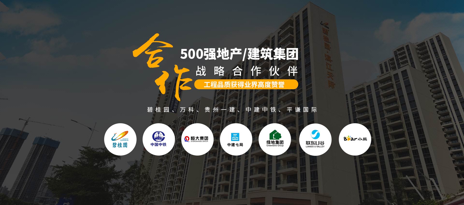 500強指定合作:與“碧桂園、萬科、貴州一建、中建中鐵、平謙國際、恒大、雅居樂”等地產(chǎn)/建筑集團建立長期的戰(zhàn)略合作關系。